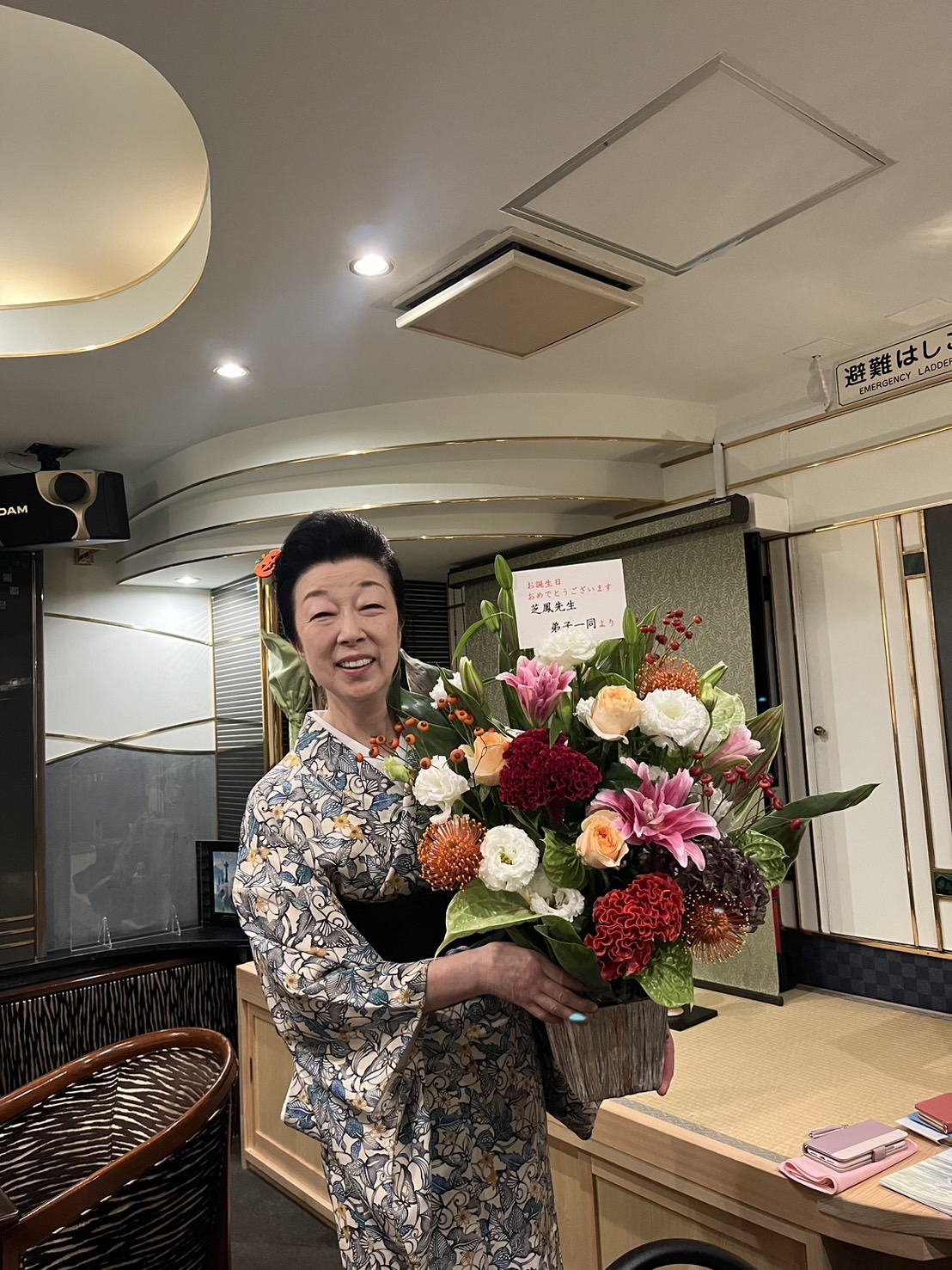 その後春日会会長とよ栄芝先生より授与された大きなお免状と師範の看板はとても立派でした。