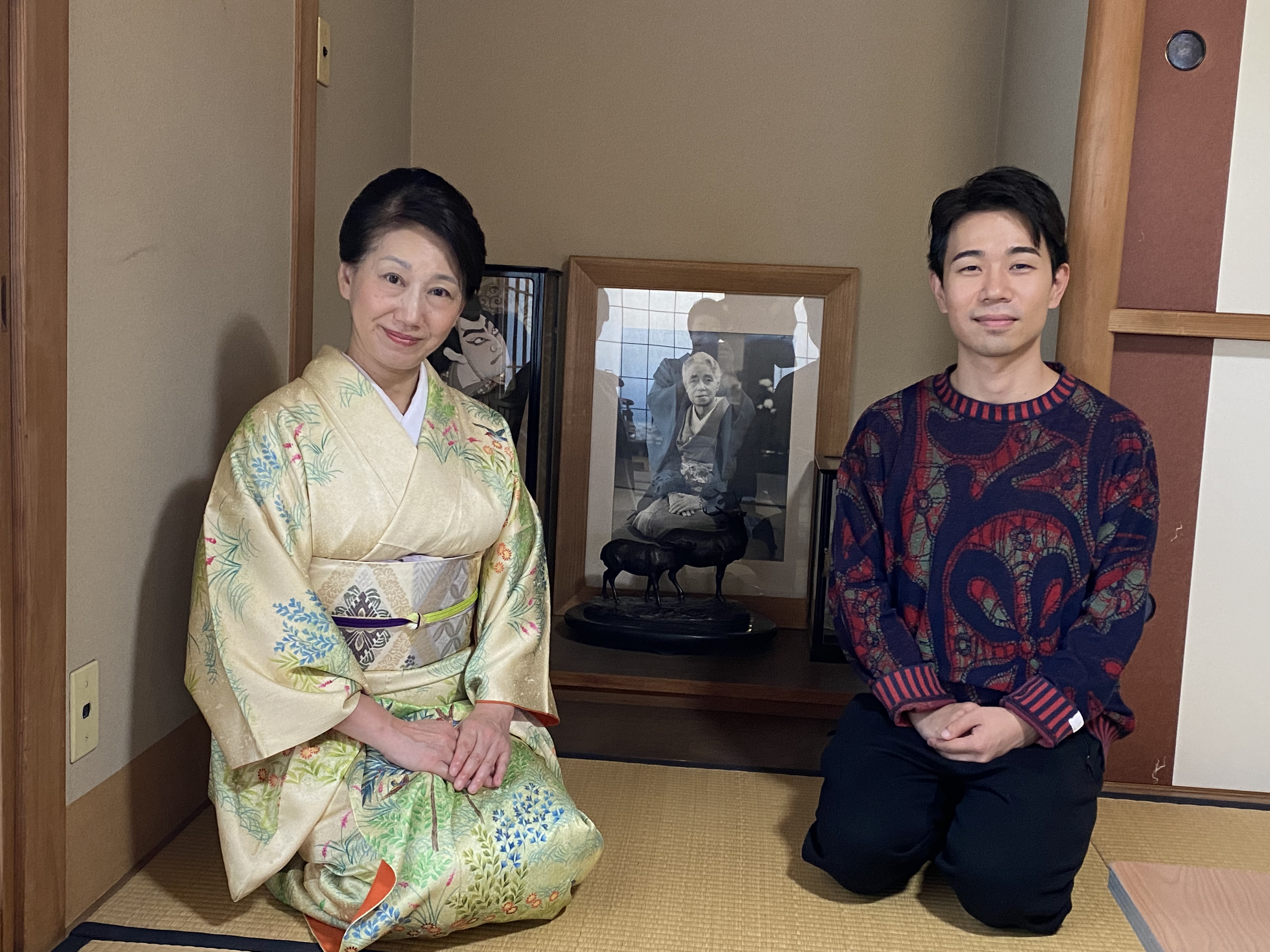 流祖春日とよ師のお写真にご挨拶をしてご一緒にカシャリ。