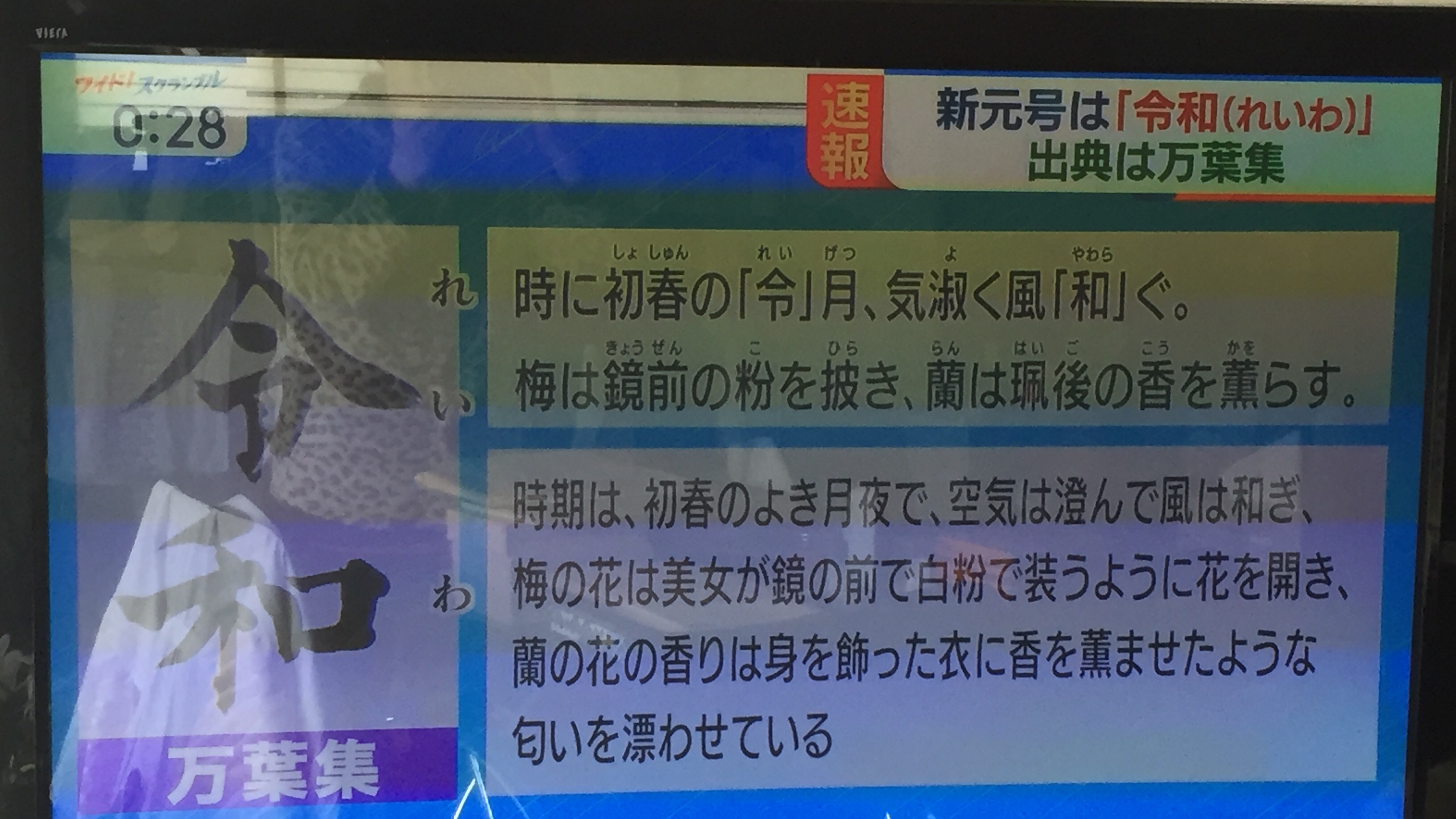 菅官房長官が掲げた「令和」の文字の響きと美しさがとても新鮮です。