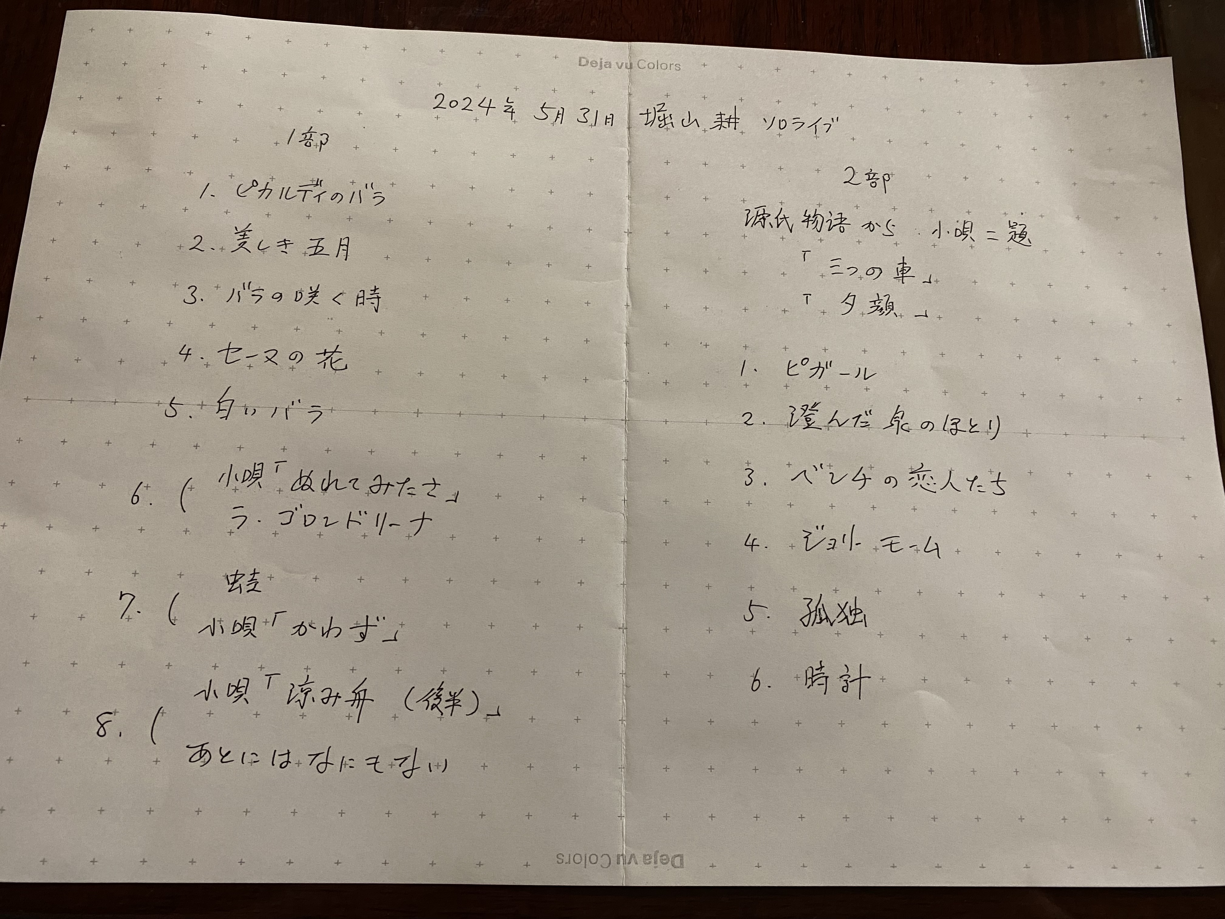 少し前に井さんより入手したプログラムにはシャンソンの曲の他に私達がよく知っている曲が並んでいます。