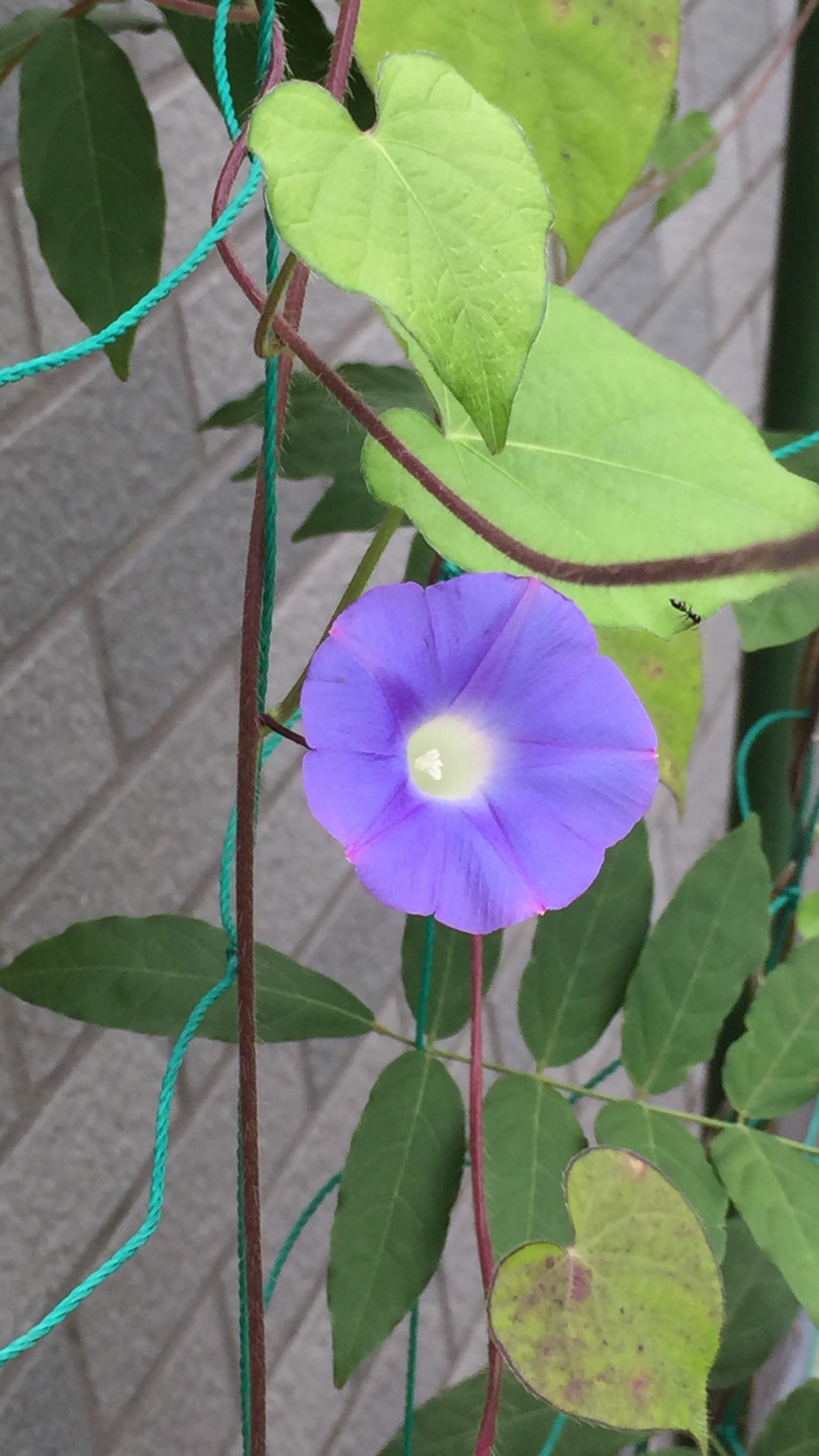 こちらは今朝ベランダで咲いた小さな残り朝顔です。